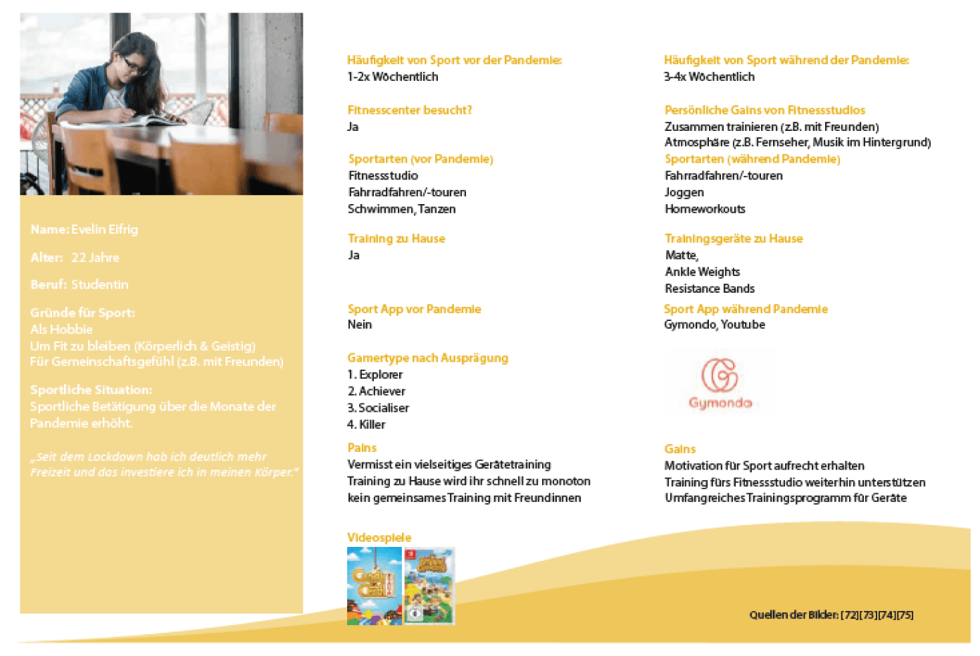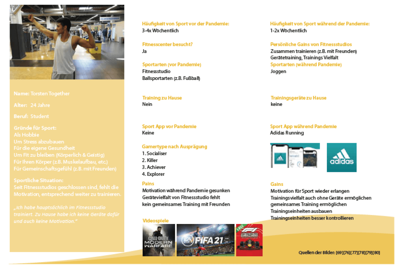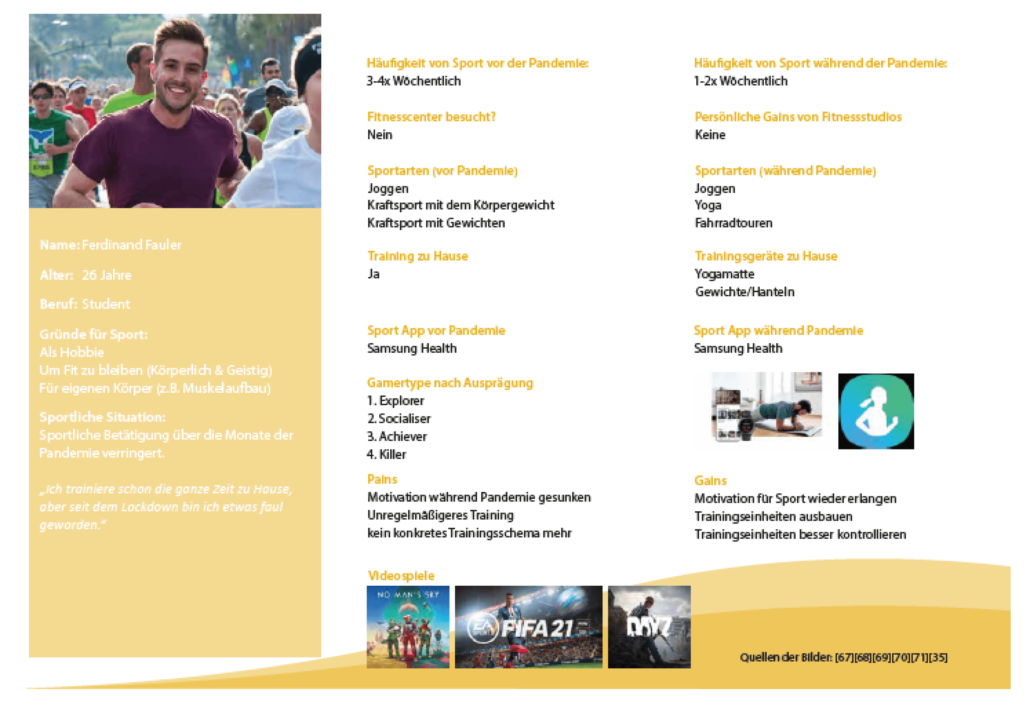 Basierend auf Research-Ergebnissen wurden mehrere Nutzerprofile entwickelt, die unterschiedliche Motivationen, Ziele und Trainingsverhalten abbilden.