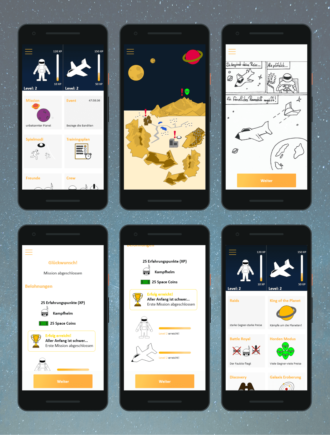 Mit jeder Trainingseinheit erhalten diese Erfahrungspunkte und Geld (Space Coins), um ihren Avatar zu personalisieren