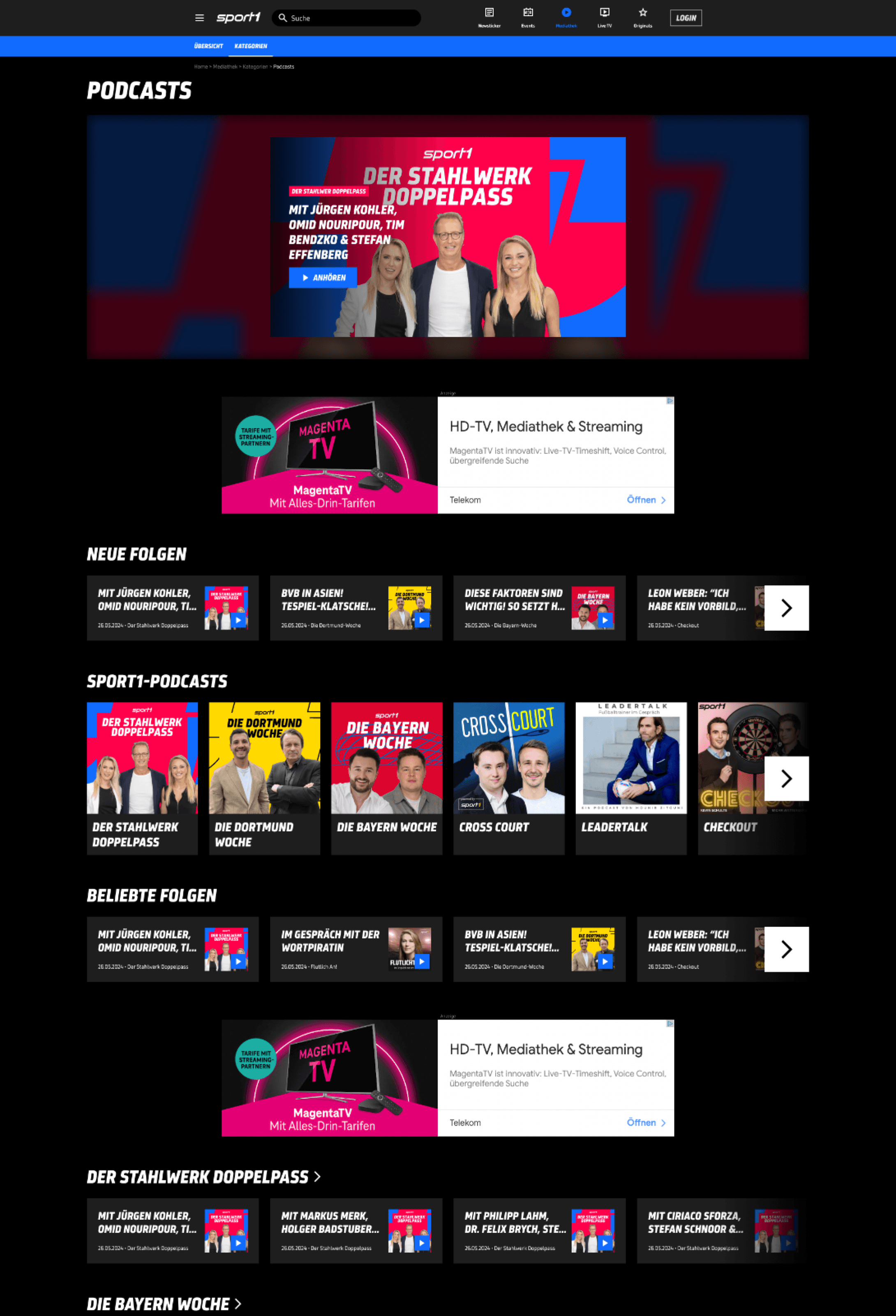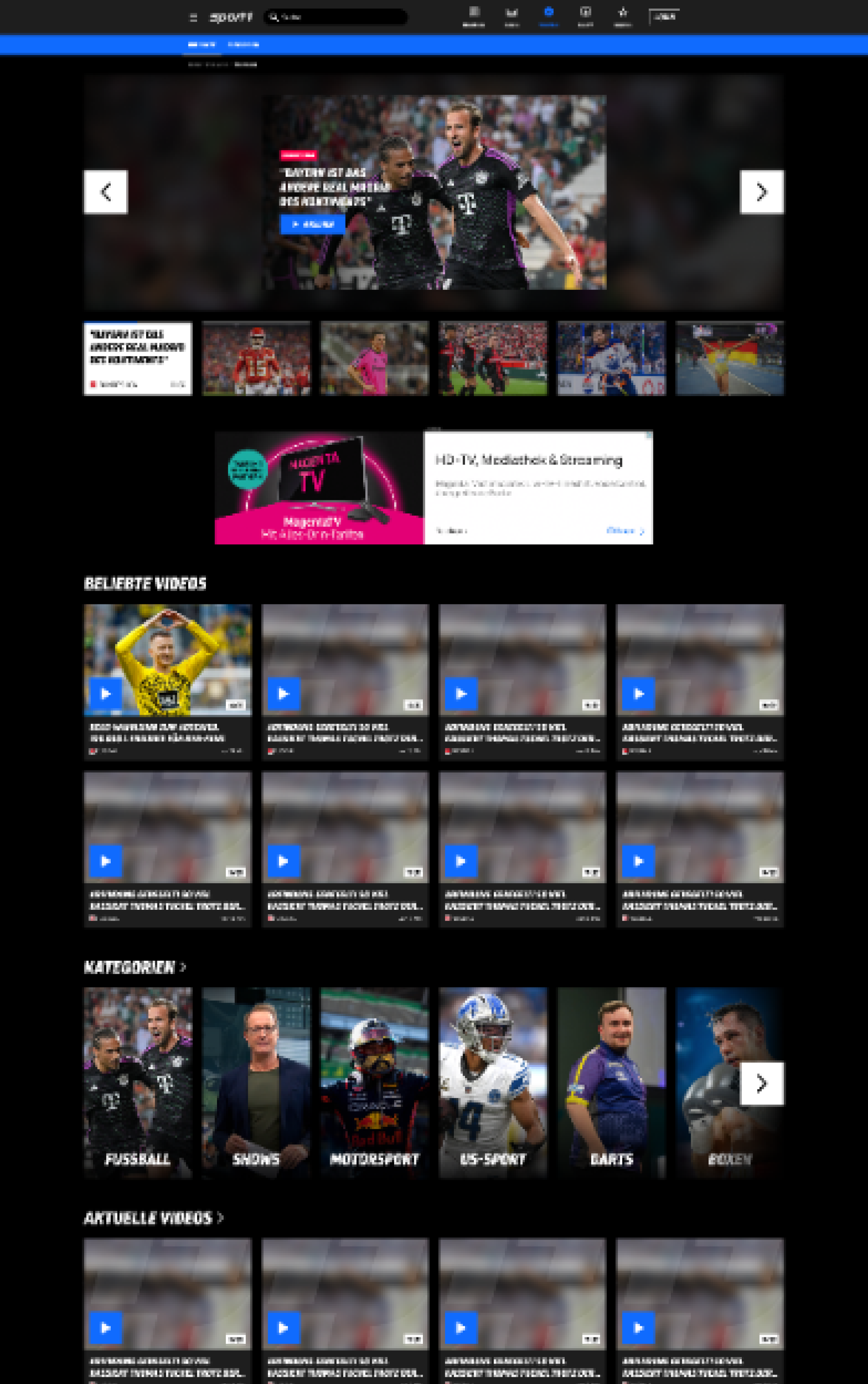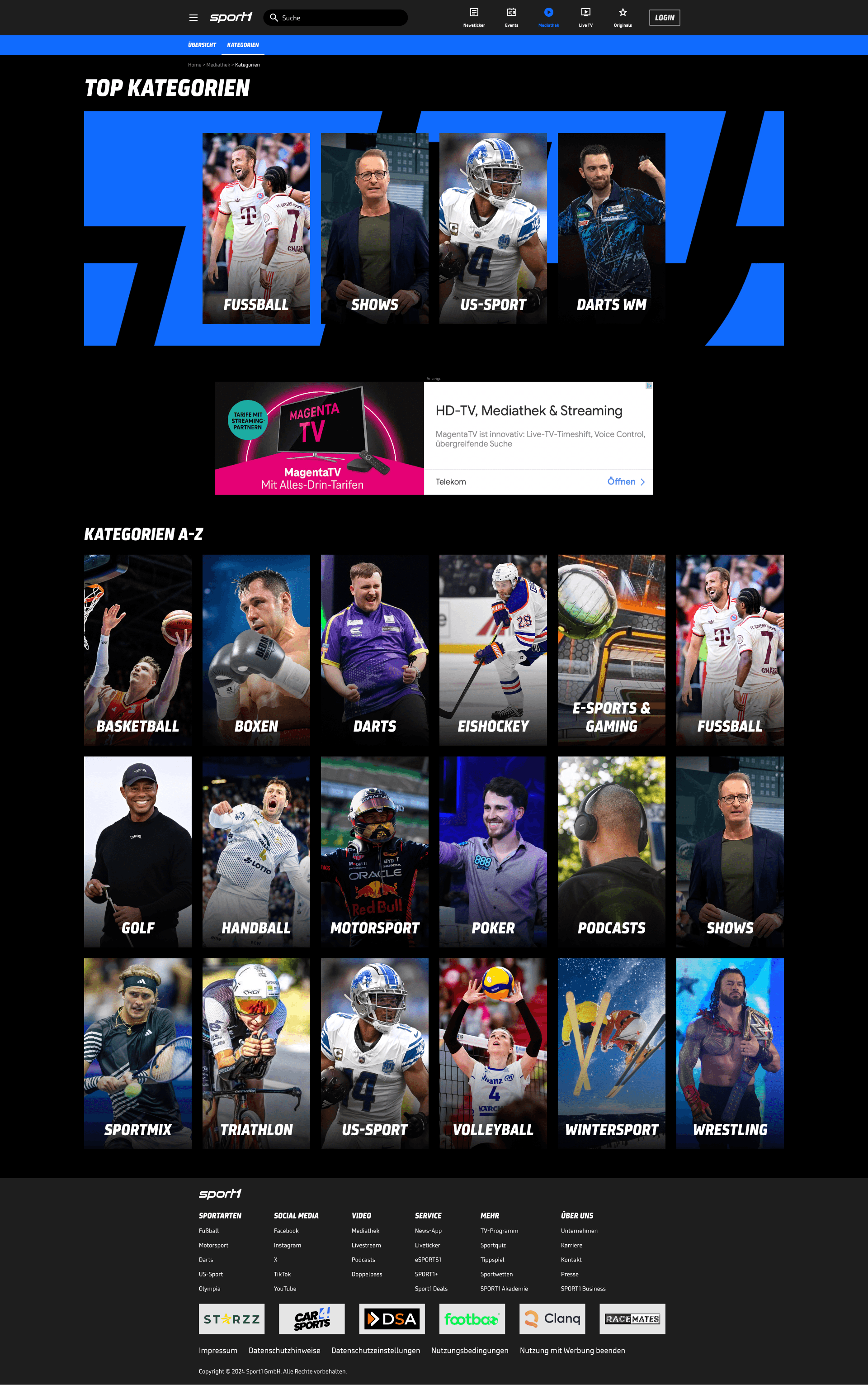 Mediathek Webseite SPORT1