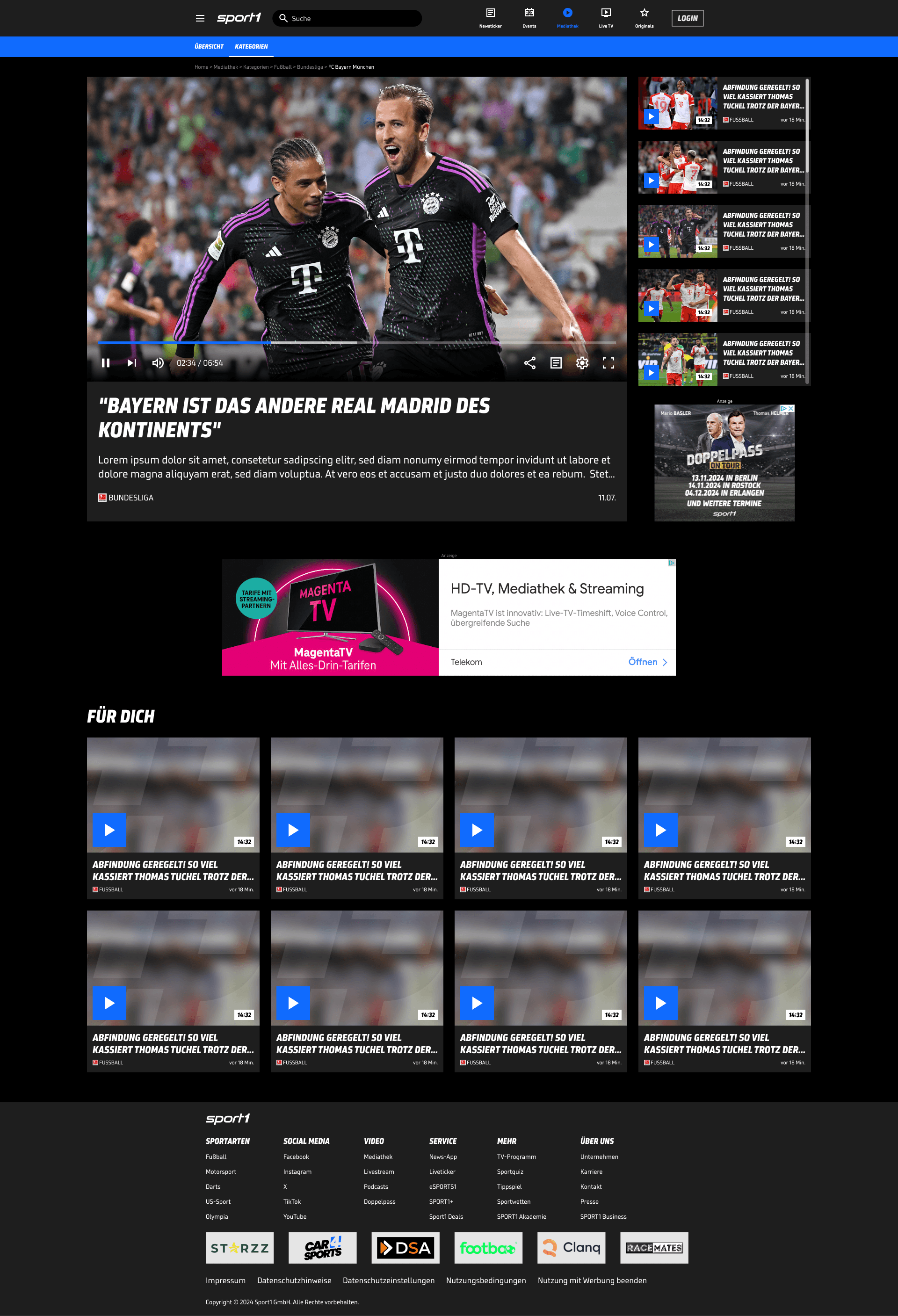 SPORT1 Mediathek - UX & UI Redesign